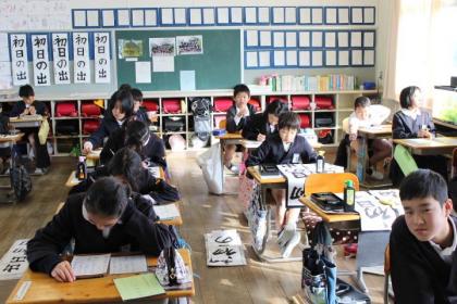 書き初め会に向けて、清書をしている学級が多いです。