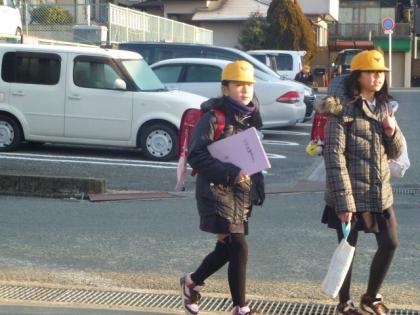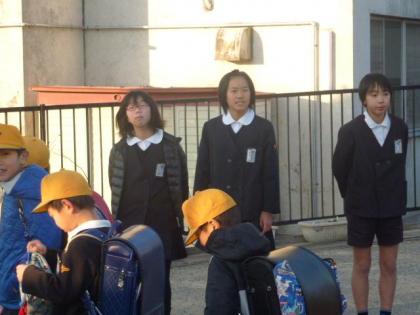 写真上:あいさつ運動ごくろうさま。「おはよう!」