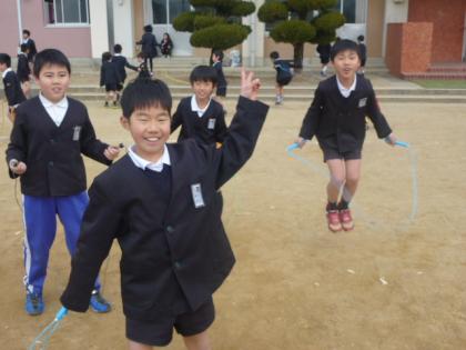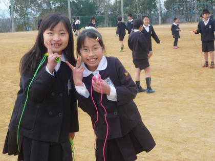 写真上:「見てみて〜。」と二重跳びを見せてくれました。