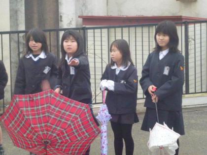 今月の「あいさつ運動」の二日目。朝の8時前後でも暗く感じ、時より雨が降る、あいにくの天気。それでも、児童長と4年生の学級委員が校門に立ち、登校してくる子ども達に大きな声で、あいさつをしてくれていました。