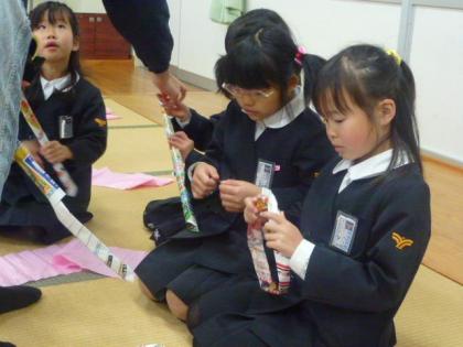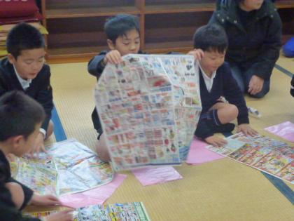 今日の放課後ふれあい教室は、1年生を対象とした「チラシでフリスビー」作りでした。