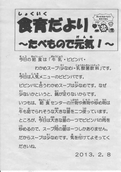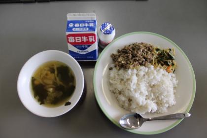 今日の献立は、ビビンバ・わかめスープ・乳酸菌飲料・牛乳でした。ごちそうさまでした(*^_^*)