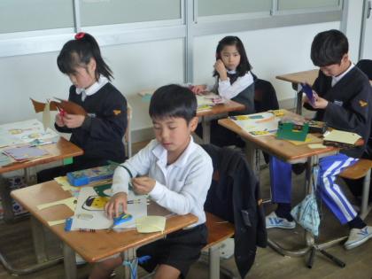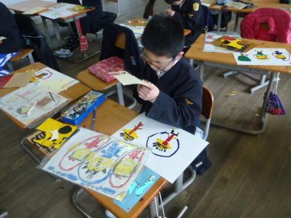 1年生は、図工の時間にカラー版画を作りましたよ。