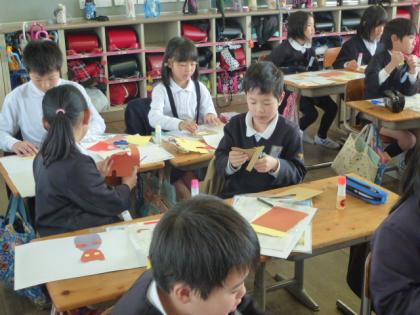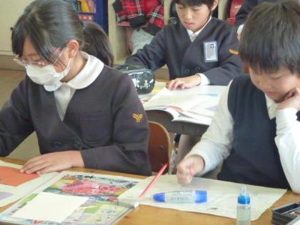 下:のりでつぎつぎ台紙へ貼っていきます。