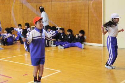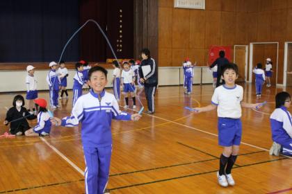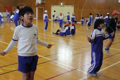 写真上:こちらは時間とびです。二分間でどれだけ跳べるか競います。