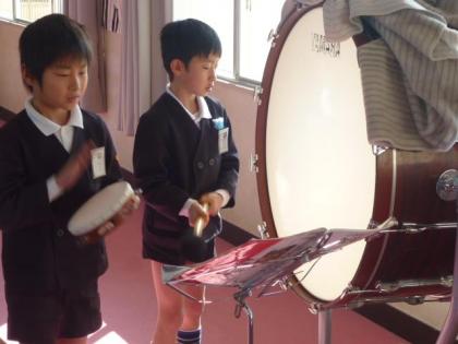 写真上:大太鼓さんは耳を澄まして鳴らすタイミングをはかります。