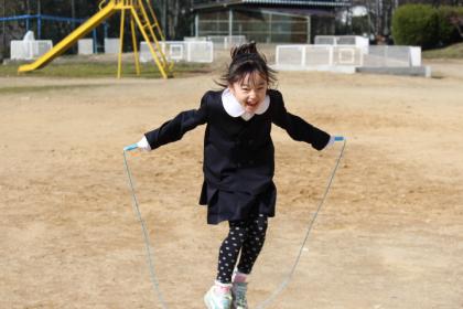 写真上:「わぁ!!」縄跳びって楽しいねっ。