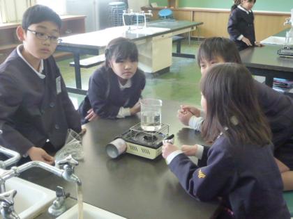 今回の実験は、水を熱すると出てくる湯気や泡の正体は?ということで、班毎に観察をしていました。さて、正体はなんだったのでしょうか?