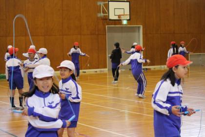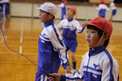 写真上:あや跳び、交差、二重跳び、後ろ跳び。