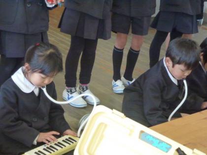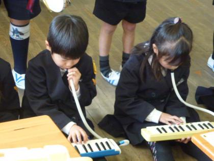 下:すごい集中力!鍵盤ハーモニカの神様が後ろに見えるようです。