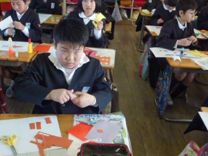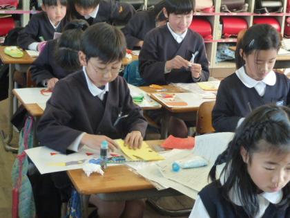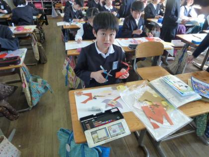 3年生は、図工で紙版画に取り組んでいます。手にしている紙は、いろんな材質があり、刷ったときに模様のおもしろさを楽しみます。