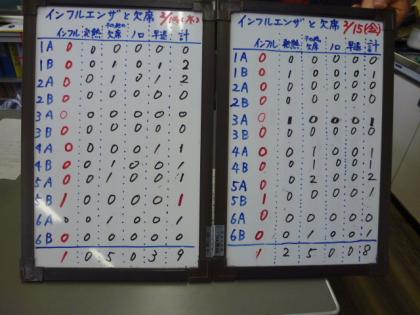 今日の欠席情報です。風邪やインフルエンザの数が増えず一安心です。みんなの努力が実っているようです。明日、明後日の休みを利用して体調を整え、月曜には元気な姿で会いましょう。