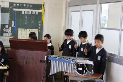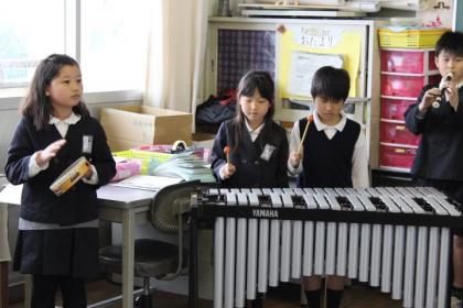 3年生が来週火曜日(19日)にある授業参観に向け、練習中でした。とてもきれいな音色でした。曲はおなじみの「○○○○○○○マーチ」です。本番が楽しみです。