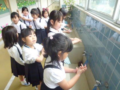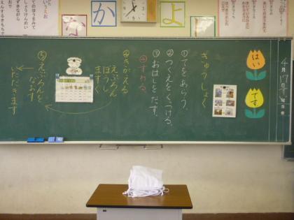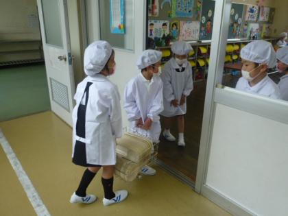 昨日習った給食の順番を復習して、待ちに待った給食です。