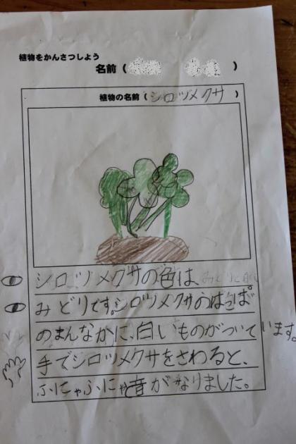 3年生があちこちで見つけた植物。目や鼻や手でじっくり観察していました。今日は、観察したことをみんなの前で発表しましたよ。緊張したけど、みんなに伝わるように言えたようです。