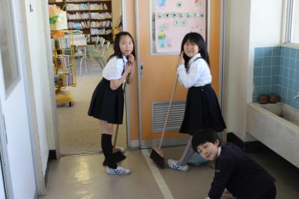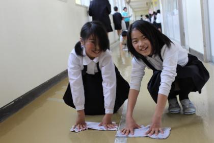 城山小学校のこの1年間の目標は『笑顔』と『あいさつ』。そして、『掃除を丁寧に』です。掃除の時間には、「学校をきれいにするんだ」と一人ひとりが意識して取り組んでいます。