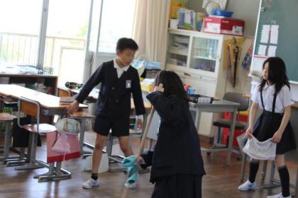 写真上:自分たちの教室のそうじは、一番気合いが入るところ。