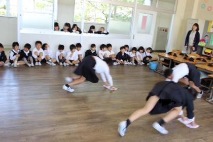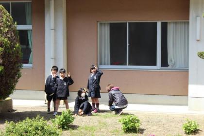 下:強い日差しと砂ぼこりの中、外のそうじもがんばっています!