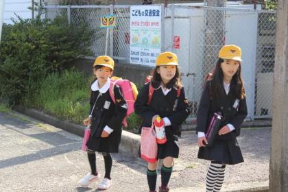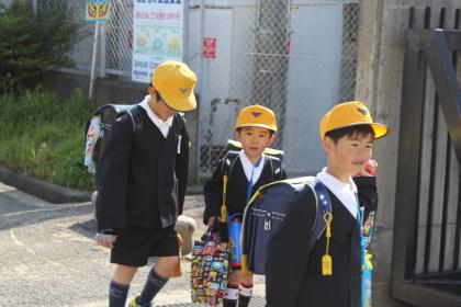 写真上:声をそろえてあいさつしてくれました。