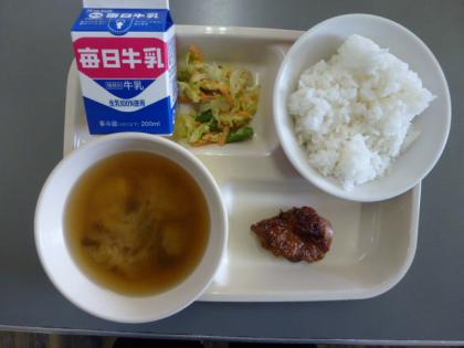 今日の給食は、ごはん・鶏肉のスパイシー焼き・春野菜サラダ・みそ汁・牛乳です。ごちそうさまでした。(*^_^*)