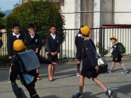 写真上:いろいろな学年の人とあいさつする大切な機会です。
