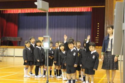 写真上:よし、青だ!僕たちが歩いている合図です。