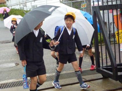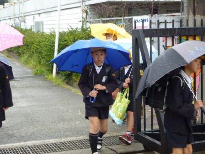 下:みんなの傘の持ち方、きちんとランドセルも守ってるんだよね。