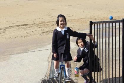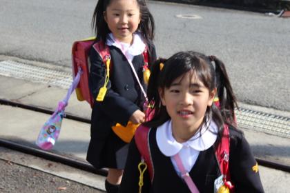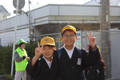 写真上:今朝も明るく元気に登校!