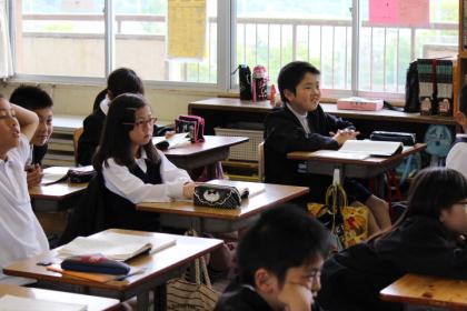下:先生の話に引き込まれ、漢字の面白さに気づいた様子。
