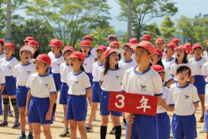 写真上:運動会の歌の練習です。お互い負けじと歌います!!