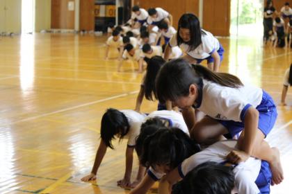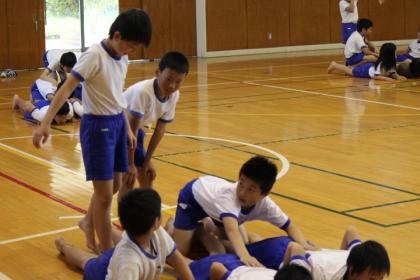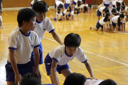 組体操の練習もいよいよ後半にさしかかっていました。短い間にずいぶんといろいろな技ができるようになったようです。最後の大技まで気を引き締めて頑張ろう!!