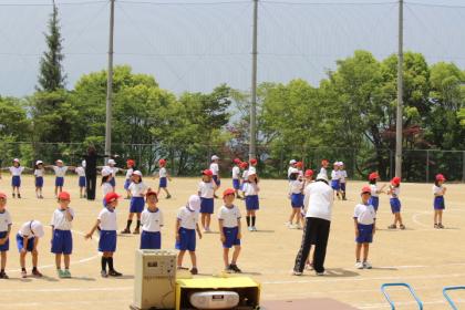 運動場では1、2年生がダンスの練習をしていました。全体練習もあわせると3時間続けての運動会の練習です。暑い中、一生懸命頑張ったね!!