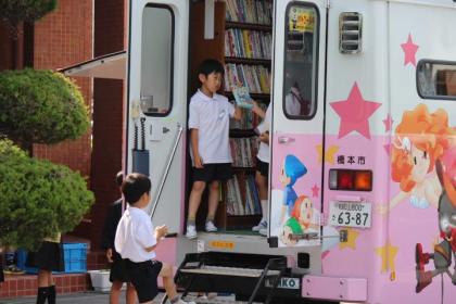 14:30〜16:00まで、ブッキー号が本校の職員玄関前に来てくれました。