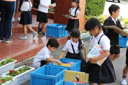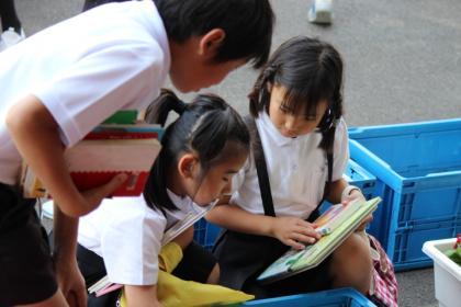 授業を終えた1年生から6年生までの子ども達がお気に入りの本を借りていました。1時間半の間中、本好きな子ども達でごったがえしていました。