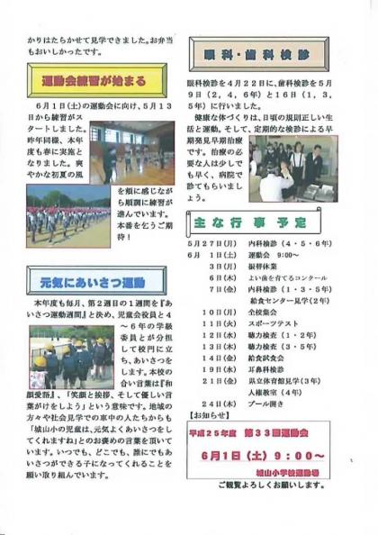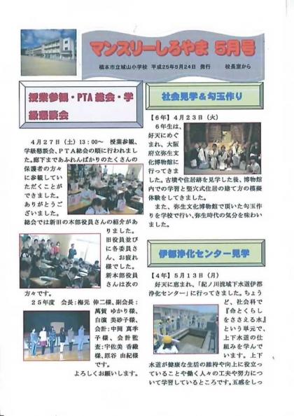 本ホームページの右側にある「配付文書」の「マンスリーしろやま5月号」をクリックするとご覧いただけます。
