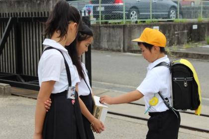 ☆ 登校&あいさつ運動&緑の羽根の募金活動⑤ 公開日 2013/06/11 更新日 2013/06/11 児童会活動 6月11日(火) 写真上:募金してくれてありがとう。 中:私も入れるよ。ありがとう。 下:大きな声でのあいさつ。気持ちいいね。 いいね(0)