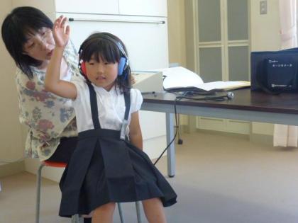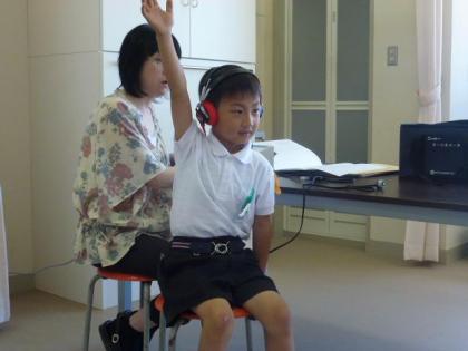 今日、1,2年生が保健室で聴力検査を行いました。音が聴こえた瞬間に、手を挙げての合図。色々な種類の音がったね。よく聴こえたかな?