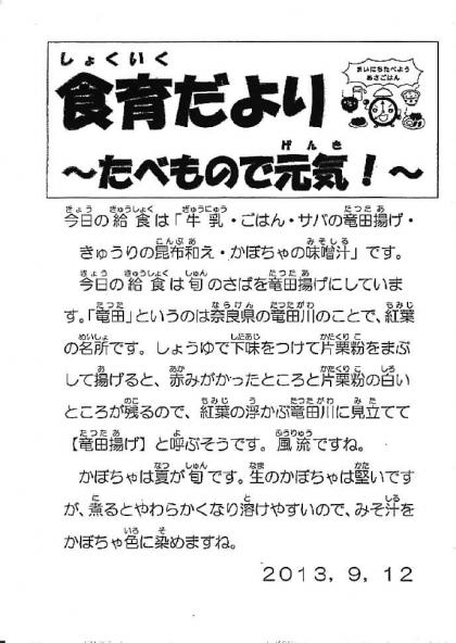 ☆ 9月12日の給食