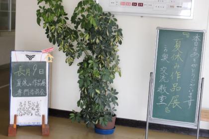 今日から3日間(9日から11日の9:00〜16:30)本校の和室、洋室(両方とも北校舎1階)にて、夏休みに制作した作品を展示しています。一人1点展示しています。どれも力作揃いです。是非、ご家族、ご近所お誘いのうえ、ご覧ください。