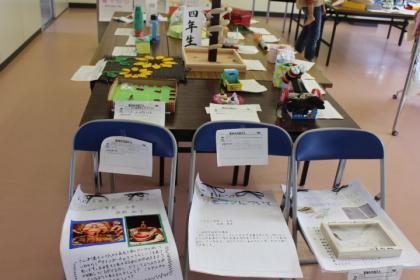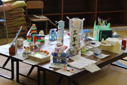 下:それを使って遊びたくなるような楽しい作品がいっぱいの4年生。