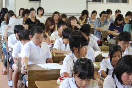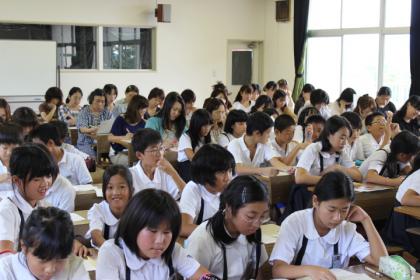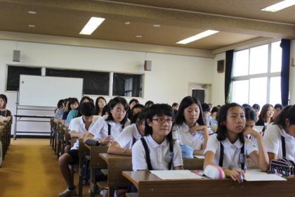 修学旅行は10月4日(金)・5日(土)の予定です。授業参観後に視聴覚室で説明会を開きました。