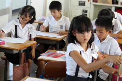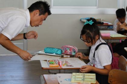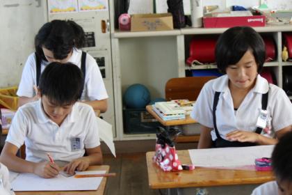 自身の名前をアルファベットで工夫した形にし、それに好きなことや好きなものを背景に描くというデザイン画に挑戦していました。