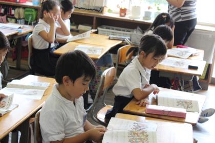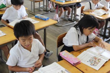 2Aの教室では、「うたえバンバン」の曲を全員で元気よく合唱していました。