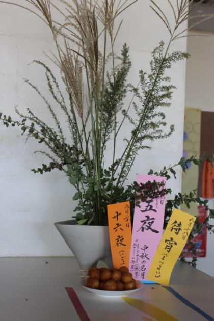 中:児童用玄関に飾ってあるよ。おだんご、おいしそう。