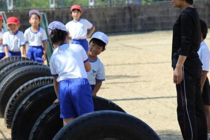 ☆ 2年 体育(タイヤ跳び&馬跳び)②
