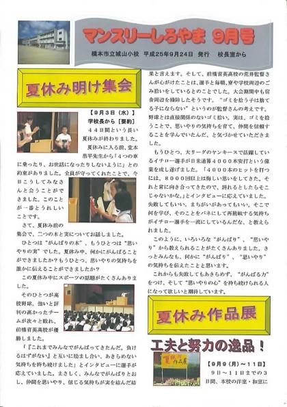 本ホームページの右側にある「配付文書」の「マンスリーしろやま9月号」をクリックすると、拡大版でご覧いただけます。