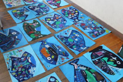 以前から取り組んでいたクジラのあくびの絵が仕上がったようです。個性あふれる絵に、思わず笑顔がこぼれました。