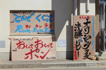 写真上:みんなが楽しめるよう、盛り上がるよう競技名の看板を用意!
