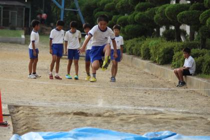 真夏のような暑さが残る放課後。グランドでは、今日も6年生が陸上競技記録会に向けて練習に励んでいました。