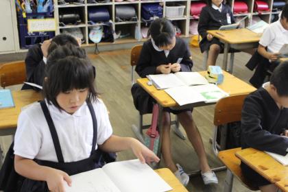 2学期のスタートとともに、国語は下の本に入りました。1ページ目をめくると、詩がありました。「あおぞら」という詩です。まずは丁寧に写し、その後は声に出し、繰り返し読んで覚えていました。